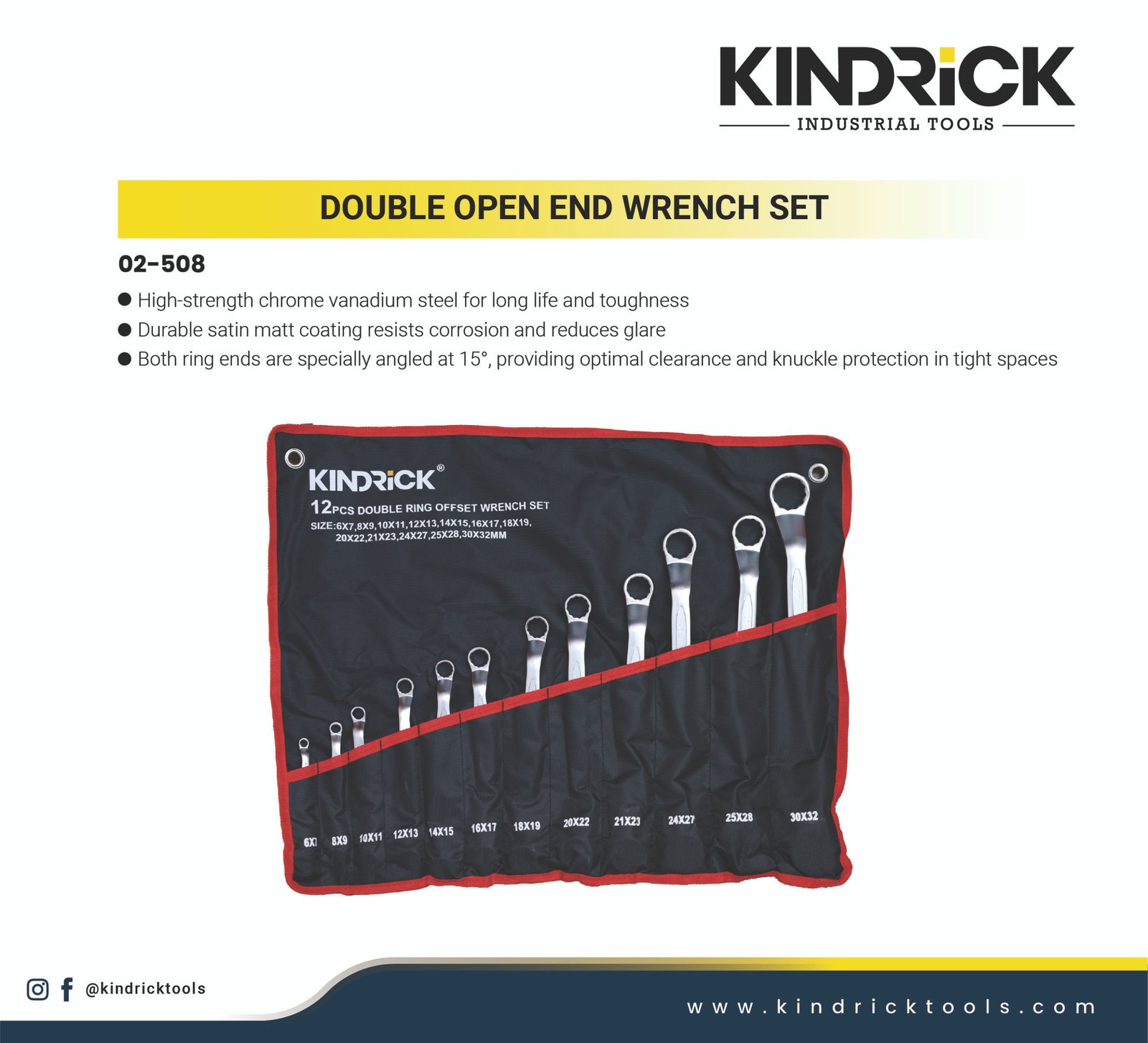 - - Both ring ends are specially angled at 15°, providing optimal clearance and knuckle protection in tight spaces